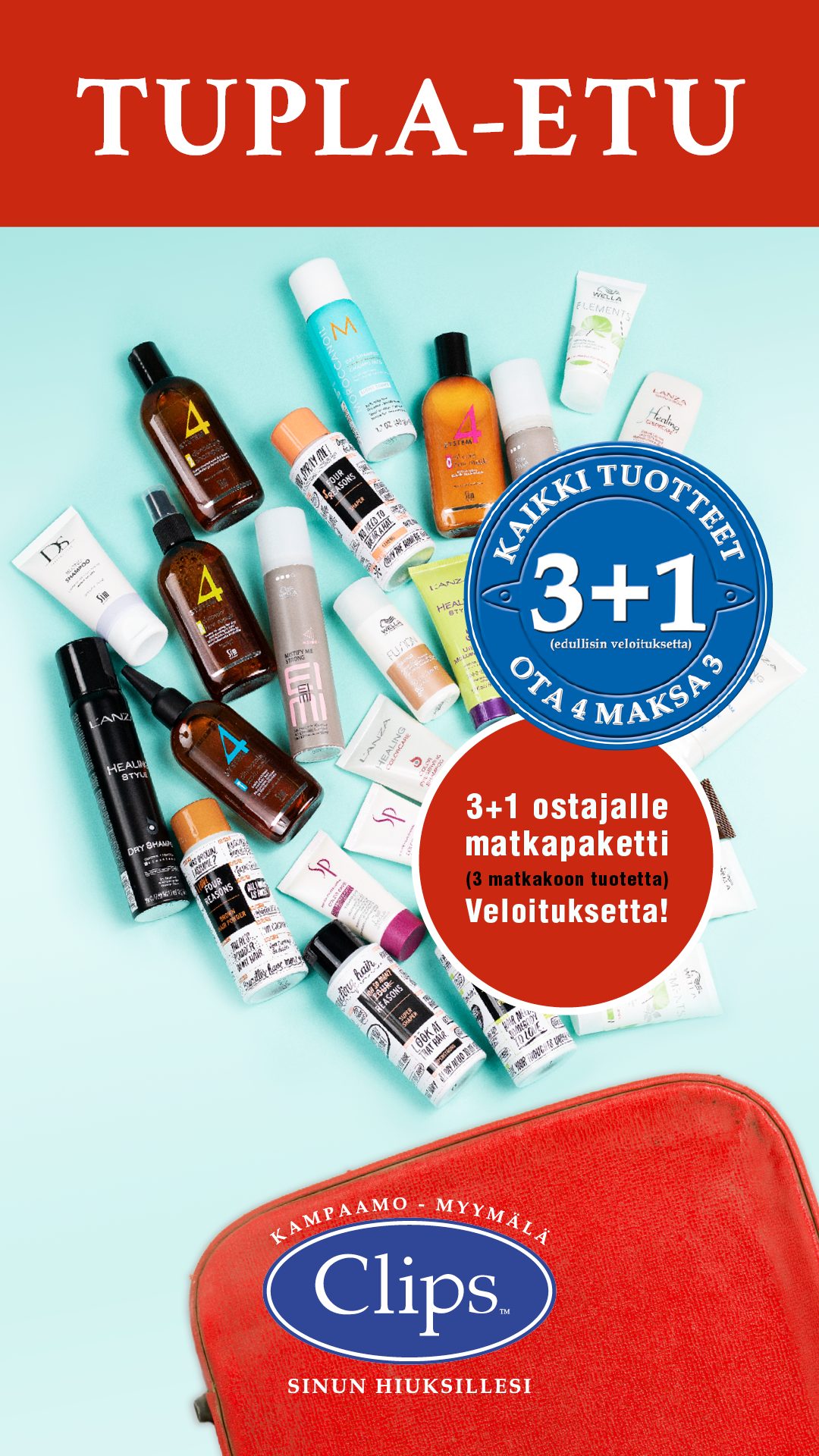 Muista myös Clipsin 3+1 tarjous: kun otat 4 tuotetta maksat vain kolmesta! Tarjoamme sinulle edullisimman ilmaiseksi!